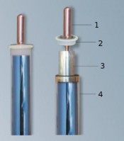 1 - Medená tepelná trubica 2 - Silikonové tesnenie 3 - Hlinikové rebro 4 - Vákuová trubica |